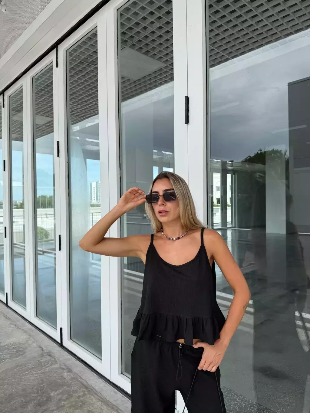 Descripcion. Top escote en V, con volado en bajo busto y espalda semi descubierta. Se puede hacer reversible.