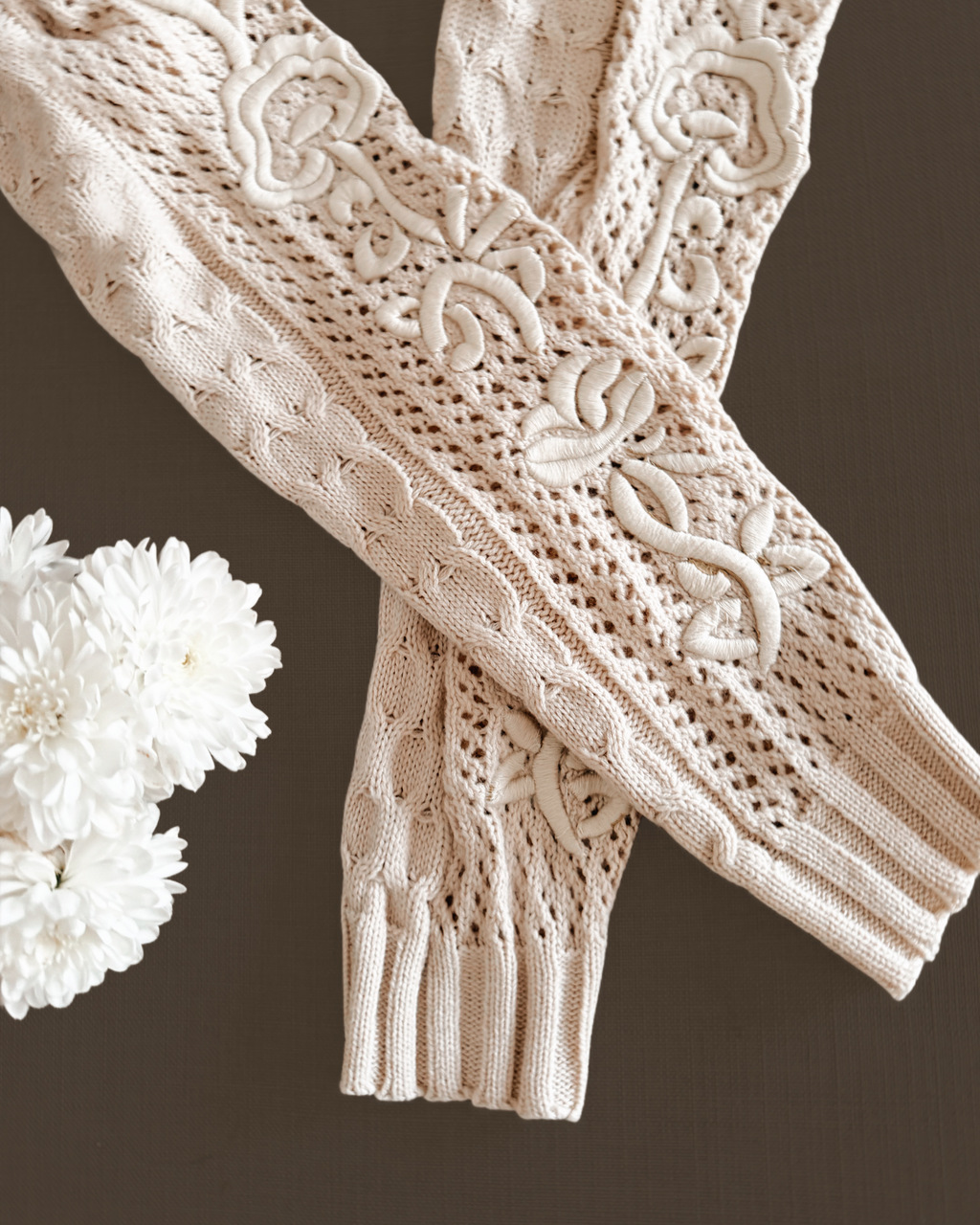 Descripción. Sweater cuello redondo, multiprograma con bordado y canutillos en frente y mangas. Es realmente precioso.