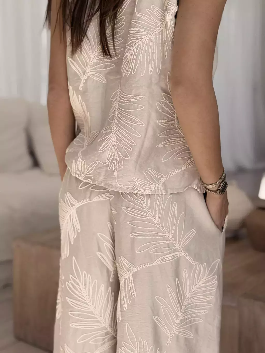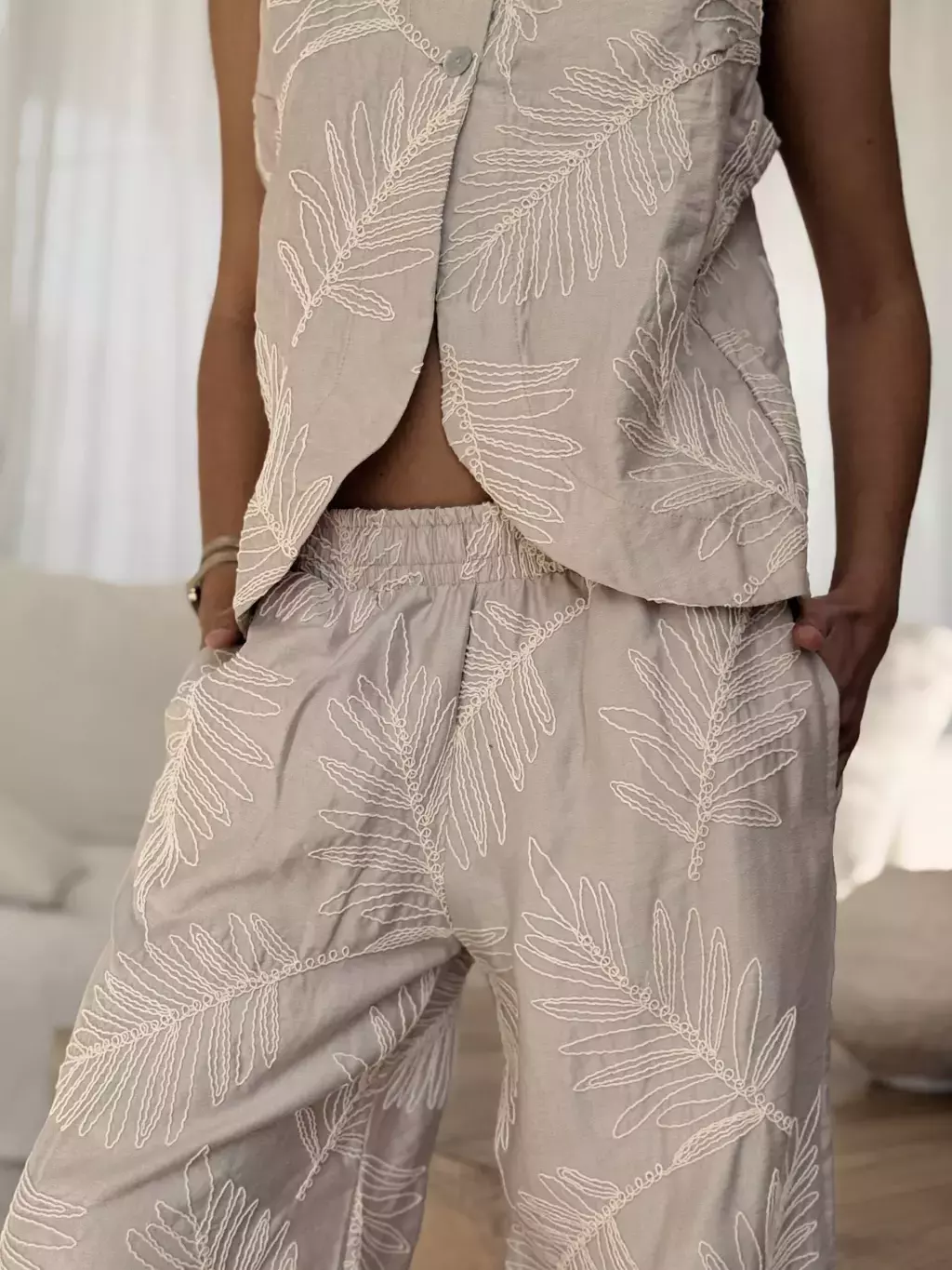 Descripción. Palazzo bordado en rayón con cintura ancha.