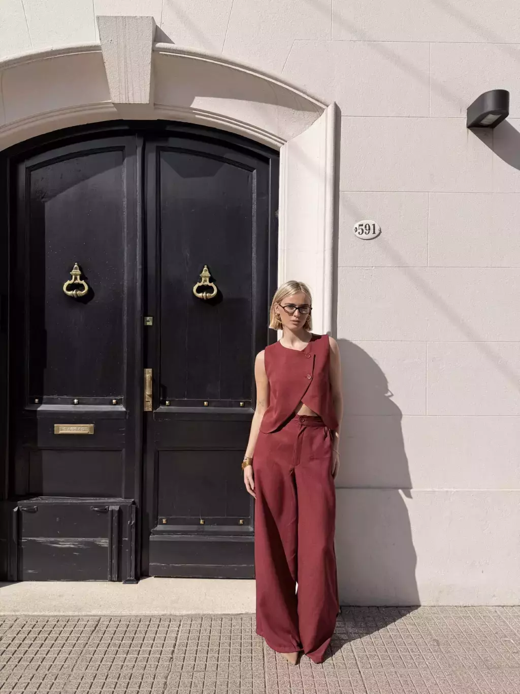 Descripción. Palazzo sastrero con botón y cierre delantero