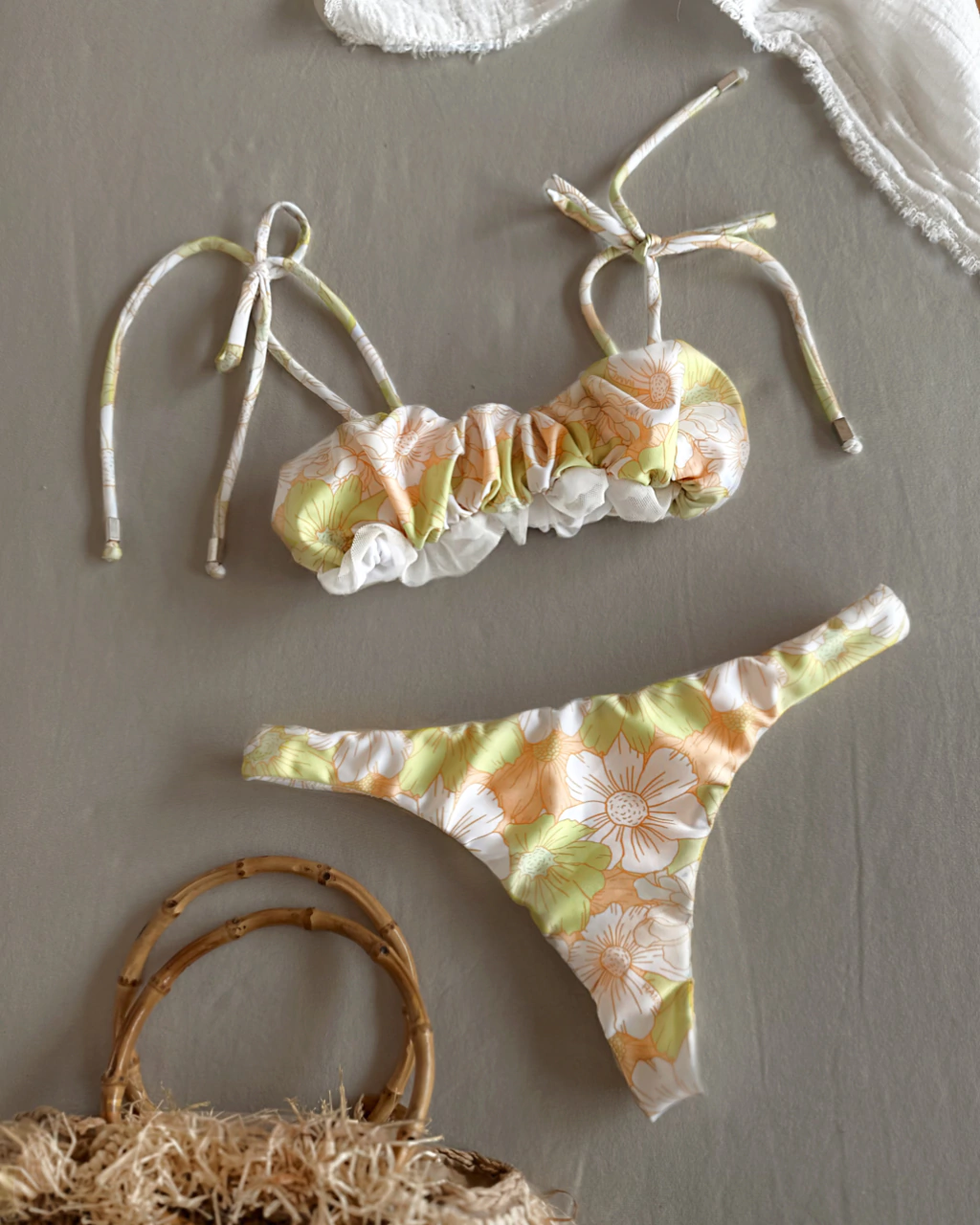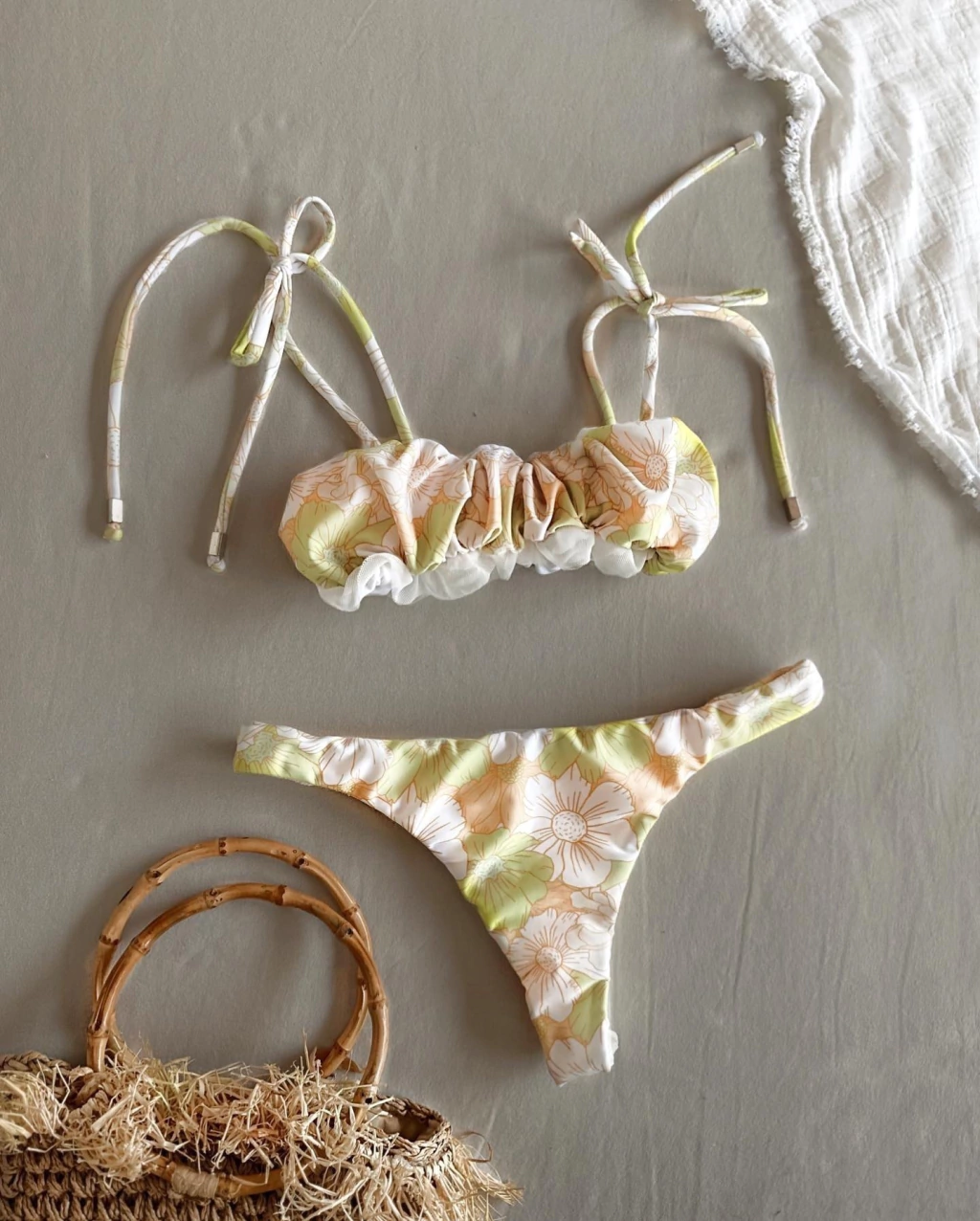 Descripción. Corpi tipo top, con bretelle atados en los hombros y detalle de microtul. Bombi colaless, reversible.
